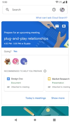 Use the power of Google to search across your company’s content in G Suite. From Gmail and Drive to Docs, Sheets, Slides, Calendar, and more, Google Cloud Search answers your questions and delivers proactive recommendations to help you throughout the day.