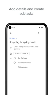 Get more done with the Google Tasks mobile app. Manage, capture, and edit your tasks from anywhere, at anytime, with to-dos that sync across all your devices. Integrations with Gmail and Google Calendar help you get tasks done—faster.