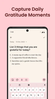 The Gratitude app will send you reminders with prompts to help you build the habit of journaling.