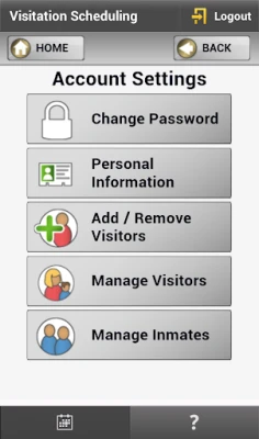 This app lets you sign up and plan visits with people you care about at participating facilities using an Android device. You can also cancel planned visits and update your account info.