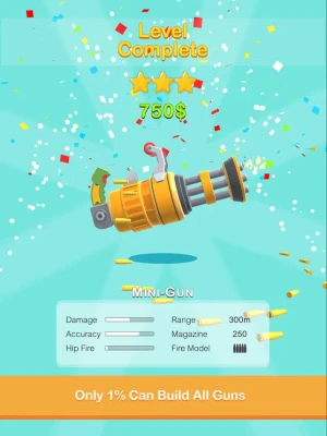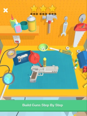 Take Orders and Build guns in Puzzle-like levels step by step and Earn Money and purchase new Tools.