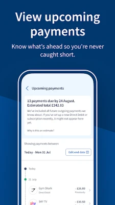 • Stay ahead of your bills - your upcoming payments summary lets you know what’s being paid and when.