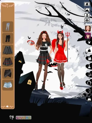 Sevelina dress up game will teach you the right approach for the perfect Halloween dress up this October. Yow will get the most of your wardrobe for the Halloween party. Also the dress up for such a night needs some skill and Sevelina knows how to teach you while playing this halloween dress up game. The biggest problem of all girls is the lack of advice for how to make a perfect dress for an ongoing event, and Halloween is not an exception. The more you play this dress up game from Sevelina the more natural and easy it will be to be prepared for a real Halloween party.