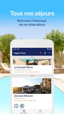 By downloading this application for free, you will have access to all Happy House destinations. Discover new ideas for your stay, by the sea, in the mountains, in the city or in the countryside. Choose the Happy House that suits you! In our Happy House, a consistent spirit of quality of service and welcome ... a unique experience each time corresponding to your vision of your stay to satisfy all your guests ... Download this free HappyHouse application now and enter a guaranteed world of happiness, discoveries and experiences. Keep this application to find each of your happy places adapted to your important moments in life.