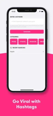 With HashtagAI, you'll gain access to an extensive library of hashtags tailored to suit any prompt or topic. Bid farewell to the days of brainstorming and let our intelligent algorithms do the heavy lifting. Simply input your prompt, and our app will work its magic, generating a diverse array of relevant and trending hashtags that align with your content.
