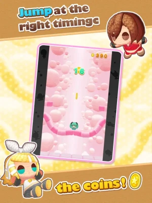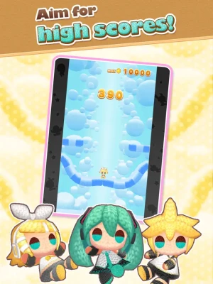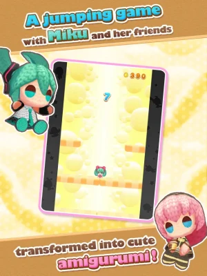 Tap the screen at the right time to make the "amigurumi" jump to the top! It's so easy to operate that anyone can play it! A variety of "amigurumi" of Hatsune Miku, Kagamine Rin, Kagamine Len, Megurine Luka, MEIKO, and KAITO are all here! Maybe Rabbit Yukine will make an appearance too! Collect many "amigurumi" and aim for the best score with your favorite one!