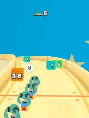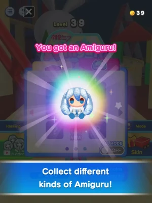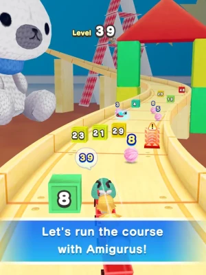 Aim for the goal by simply dragging left and right! If you collect a ball of yarn, you'll connect to more Amigurus! Be careful of the numbered walls, because you'll lose Amigurus if you bump into them! There are all sorts of items and gimmicks in the course! There's also an endless mode so you can play over and over again to aim for a high score!