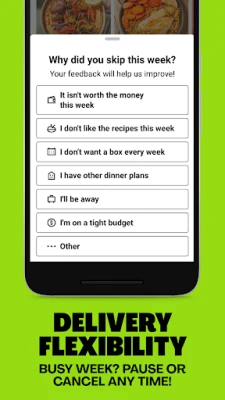 The HelloFresh app makes managing your weekly meal subscription simple. Just access your account on your Android device to manage your delivery day, swap out ingredients and recipes, or change the number of meals or the number of people you are feeding. Perfect whether you’re eating alone or cooking for the whole family!