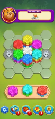 Honey Factory redefines sorting puzzle games with dynamic 3D hexagon boards and relaxing flower-shaped elements. Swipe to stack hexagon tiles and merge matching colors. Strategically stack, sort, and merge hexa tiles to create cascading color matches, while soothing gradients and ambient sounds melt away stress. Discover where the art of color sorting meets the thrill of stacking hexagons in a stunning 3D world!