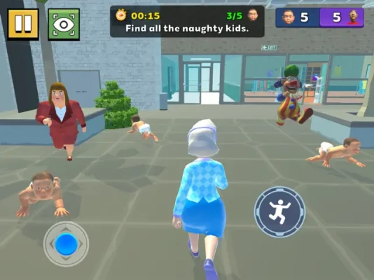 - Play as daddy, uncle, mom, police, clown, find and catch people