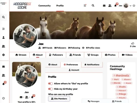 Hodgepodge social community site is a social site made simple it easy to use you can share your post with friends or members all have private settings on active wall all profile pages have private settings you can also message your friends and so much more.