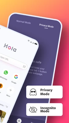 The private hola browser has Incognito mode that allows you to browse and search the web pages privacy and incognito without leaving any search or browsing history.