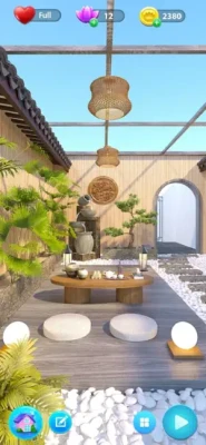 Relax your mind in a zen game with solitaire game play, surrounded by a calm atmosphere, and use your creativity to design the perfect zen room.