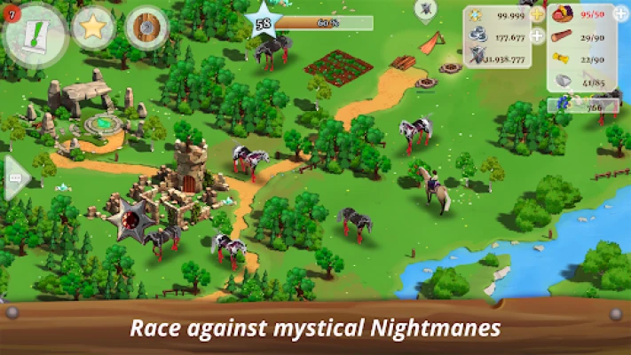 The Nightmane herd lurks at the gates of your village. Repel the herd with your horse. Choose your villager who has the right strength to defeat the herd. Each villager must train so that he does not lose his strength and can put the enemy herds to flight.