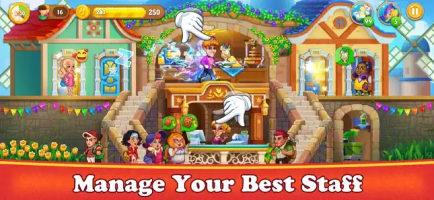 With this hotel simulation game, you will become a Hotel Manager with the best staff: the waitress, the doorman, the receptionist,... They will help you serve and do any requests from your guests. You will easily manage by tapping to control your employees to perform the work.