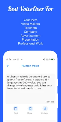 Transform any text into lifelike spoken words with Human Voice Text to Speech – your ultimate tool for converting written content into realistic human-like voiceovers. Whether you're multitasking, learning a new language, or creating voice content, our app offers ultra-clear, natural speech output in multiple languages and accents.