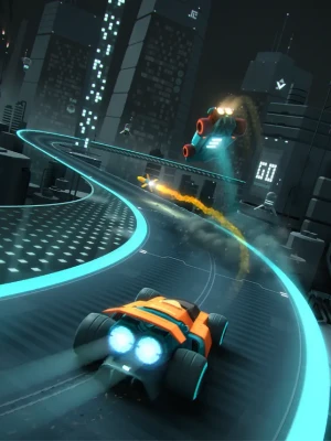 Two cars. One race track. And a whole arsenal of power-ups. Welcome to the dynamic racing world of the future.