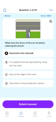 As you answer questions, the app lets you know if you're on track and where to look in learn to drive smart for more info.