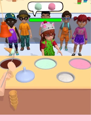 Entertain your customers by playing with an ice cream scoop! Pull and rotate your scoop to trick your customers but not to the point of making them angry!