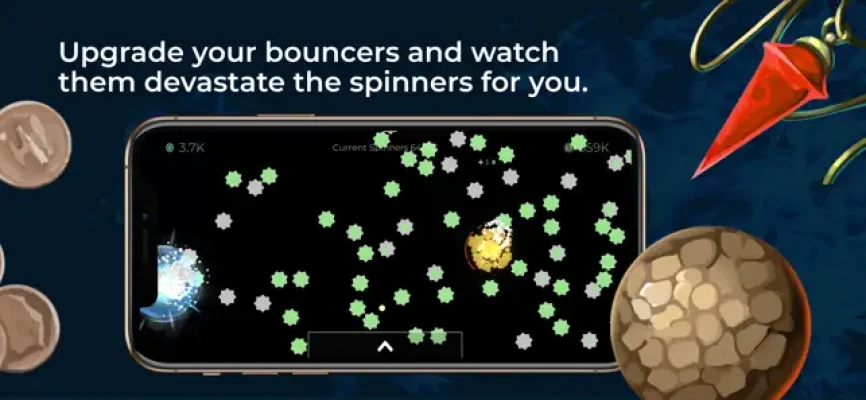 Use your gems to buy upgrades and unlock special bouncers to destroy the spinners.