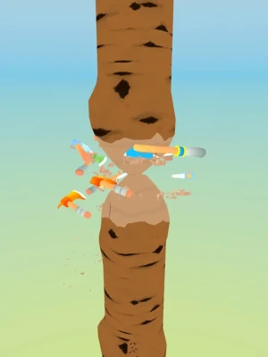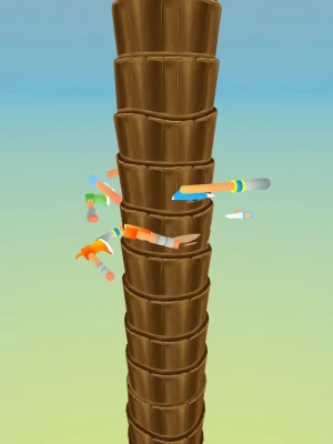 Have you ever cut a tree before? Think about a huge tree. Will you manage to cut it? There will be a very big tree and just an ax. You will start cutting the tree from the top. Whwn you arrive to the root of the tree, you will start with another map. The game starts only one ax. As you hit the ax to the tree, you will win coins. Each hit will bring you 1 coin. With these coins you can improve your ax or buy another one. So you can get much more coins at the same time. Improved axes will make you win much more coins with just one hit. And you can also add new routes for your axes. As you pass the next map, your tree will be bigger. You will have to buy lots of axes and improve them.