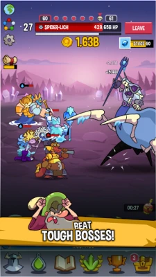 Tap into an epic idle RPG adventure. Train your team to become the heroes they can be and lead them in epic idle quests. Let them battle through the Worlds of Elements: earth, fire, wind, water and ice and hordes of enemies.