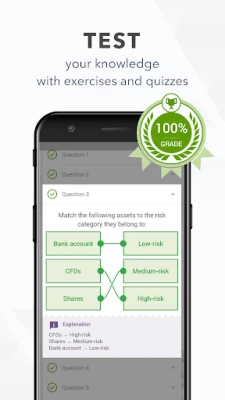 Interactive exercises, videos, interesting facts and graphics give you a detailed yet engaging introduction to trading. And once you’ve studied the theory, you can check your understanding with a quick post-course quiz.