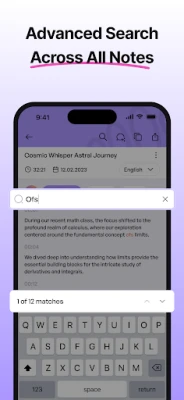 Use advanced search to find specific notes or keywords in seconds.