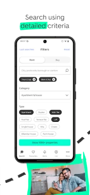 Filter your search results using relevant criteria such as number of rooms, living space and price.