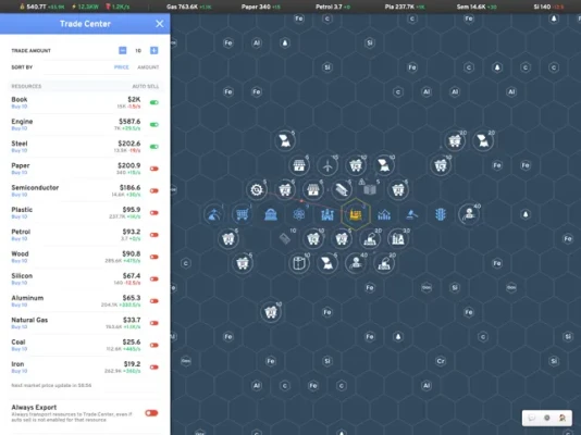 - 85+ different resources to produce, buy and sell
