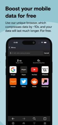 * Boost your mobile data for free: Use our unique browser, which compresses data by ≈10x, and your data will last much longer. For free.