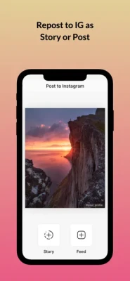 • The caption is automatically copied to clipboard for you to paste while reposting.