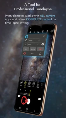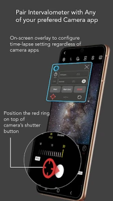 This app works like an actual intervalometer for smartphones, it automates camera shutter triggering using AccessibilityService API and it works on any camera app for Android 7 and above.