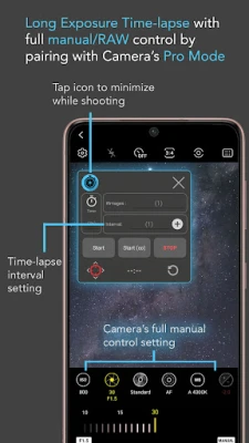 Normal time-lapse mode in most smartphones only allows auto exposure without additional controls on exposure settings and RAW format.