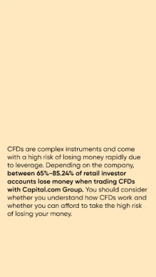 CFDs are complex instruments and come with a high risk of losing money rapidly due to leverage. Depending on the company, between 65%-85.24% of retail investor accounts lose money when trading CFDs with Capital.com Group. You should consider whether you understand how CFDs work and whether you can afford to take the high risk of losing your money. Professional clients can lose more than they deposit. All trading involves risk. Please refer to our Risk Disclosure Statement.