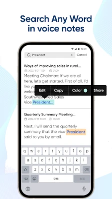 * Search & Playback: search any words in audio, playback at an adjustable speed.