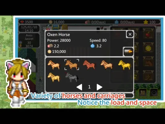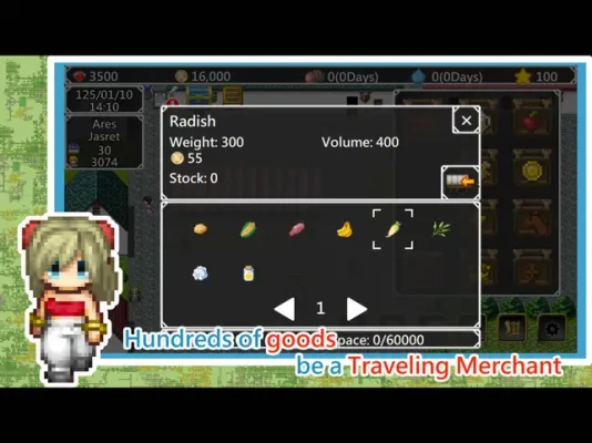 A difficult RPG game, made in retro style. Being a traveling merchant, you travel between cities in an Isekai world, trade various goods to make money. protect your caravan from monsters, and find the legendary foods out!