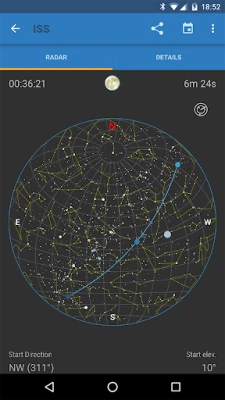 ISS Detector Pro will tell you when and where to look for the International Space Station or Iridium flares. You get an alarm a few minutes before a pass. You will never miss a pass of the International Space Station and you will never miss the bright flashes of the iridium communication satellites. ISS Detector will also check if the weather conditions are right. A clear sky is perfect for spotting.