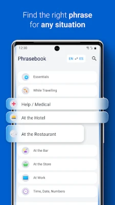 - Phrasebook with hundreds of useful translated phrases.