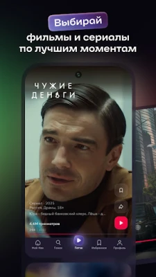 - Уникальная функция «Поток». Бесконечная лента лучших моментов. Добавляй понравившиеся фильмы и сериалы в «Смотреть позже» или сразу смотри целиком.