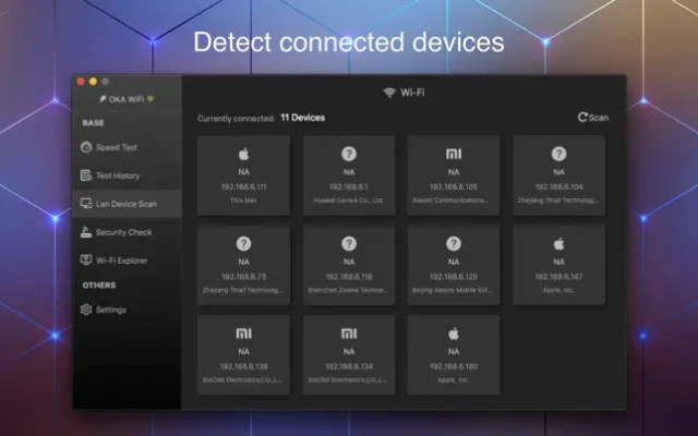 - Network device scan, the network is slowing down and getting stuck, measure to see if there are any suspicious network devices