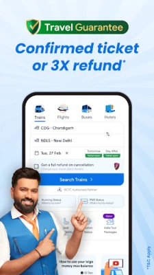 Get confirmed train tickets with the IRCTC authorised train app, including Tatkal booking of special IRCTC trains and live train status. Easily book train tickets from the IRCTC train app, check your PNR status and live NTES running status, know where is my train, and check your IRCTC train status even without the internet.