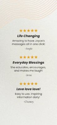 The Joyce Meyer Ministries app makes it easier than ever to experience Joyce’s teachings—at home or on the go. With fresh content daily and exclusive early access to some programs, you’ll always have something new to lift your spirit.