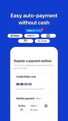 Easily register your payment method using a credit or debit card, or take advantage of simple mobile payment for a hassle-free experience. Rest assured—with our safe payment system, your rides are automatically processed right after your ride ends using your registered payment method.