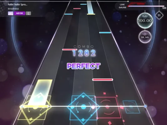 Points are scored by touching the note along the decision line like normal Rhythm game.