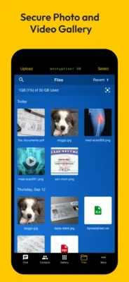 • Private, encrypted media gallery (nothing is saved on device’s camera roll)