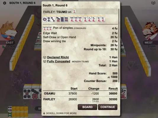 * Japanese/Riichi style following European Mahjong Association (EMA) rules