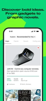 The Kickstarter app connects you with groundbreaking projects across games, publishing, technology, comics, and film.