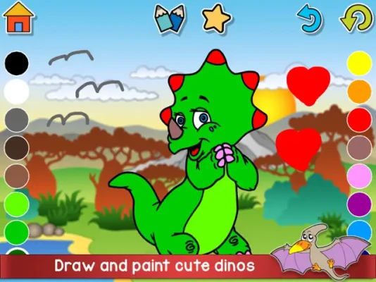 This is a simple yet fun drawing app for kids. Color lots of cute dinosaurs, have fun creating your own doodles in free draw mode, and laugh at the wacky color combinations created by the random button!