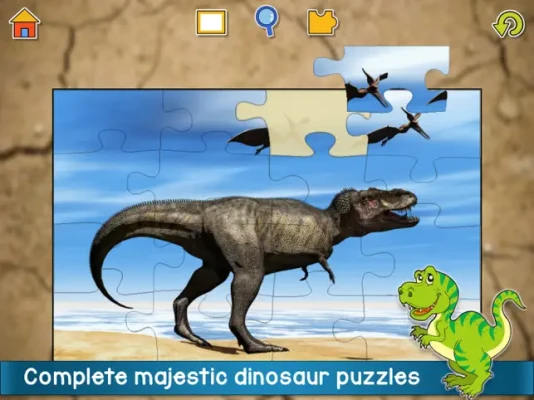 In this intuitive puzzle game for kids and adults you can choose whether to use 6, 9, 12, 16, 30, 56 or 72 pieces, adjusting the difficulty to the appropriate skill level. Great for relaxation and hand-eye coordination. If you or your kids like dinosaur games and jigsaw puzzles, they will LOVE this puzzle filled with cool dino pictures!